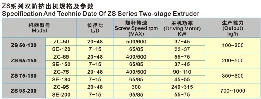 ZS系列雙階混煉擠出機(jī)由兩階組成,第一階是同向雙螺桿擠出機(jī),第二階是單螺桿擠出機(jī)。