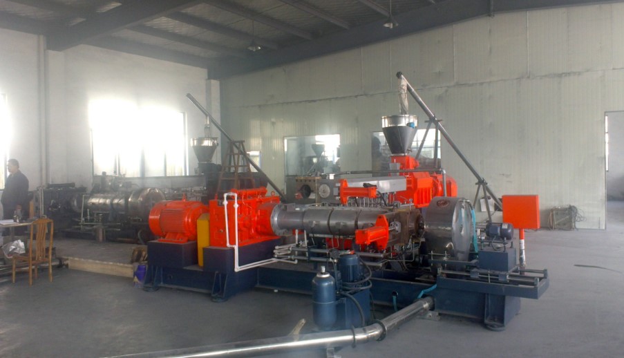 該設(shè)備可由雙螺桿擠出機(jī)實(shí)現(xiàn)對物料的剪切、混煉, 由單螺桿擠出機(jī)完成擠出、造粒。科學(xué)
